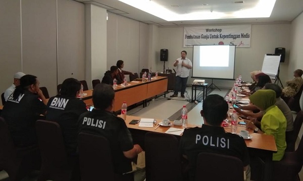 Workshop on cannabis regulation for medical purposes with speakers from LGN and the Institute for Criminal Justice Reform, organised by East Java Action in Surabaya in July 2019 / LGN Surabaya