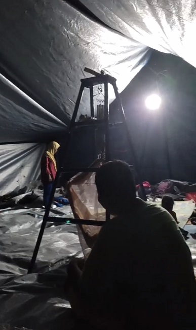 Parigi villagers take shelter in an emergency tent the night following the storm surge/Jhoko Wally